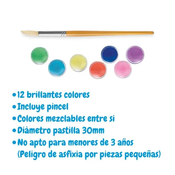 Colores brillantes en pastilla y fácilmente mezclables entre ellos para conseguir infinitas tonalidades.